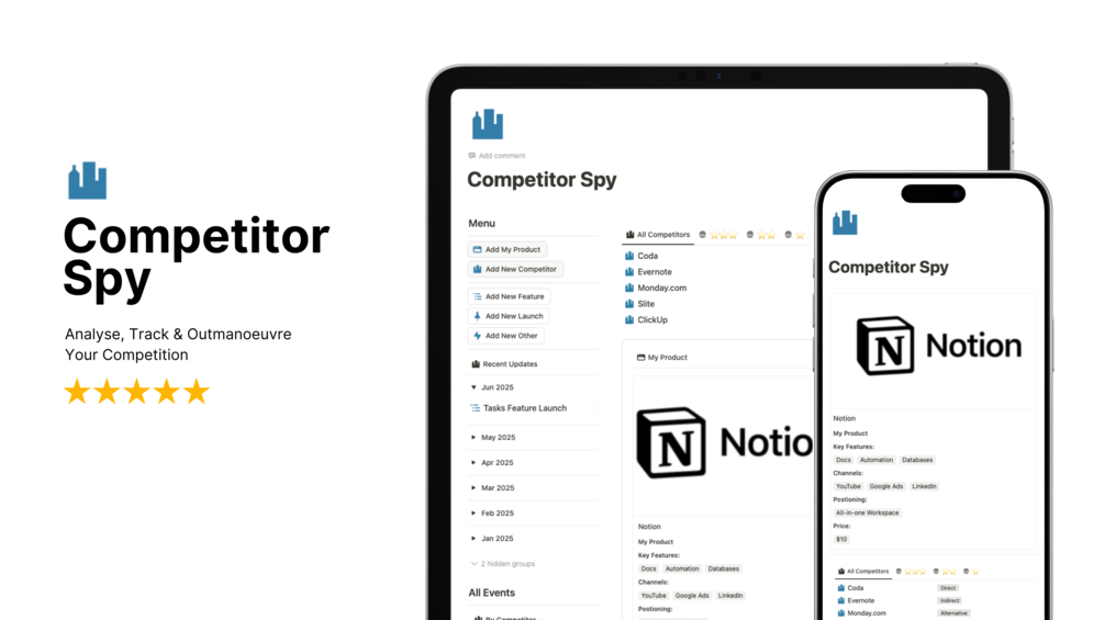 Competitor Spy (Notion Template For Competitor Analysis & Monitoring)