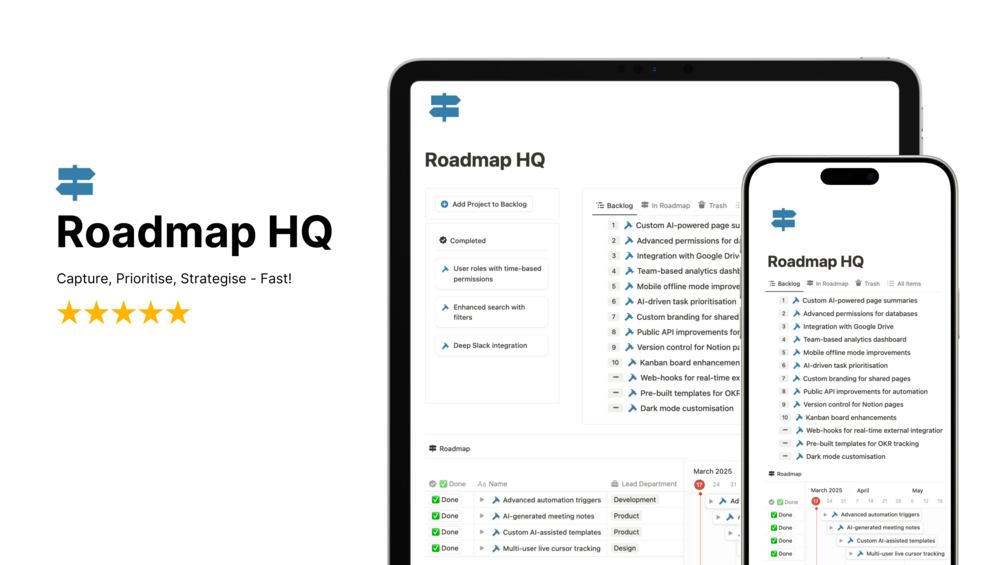 Roadmap HQ (Notion Template for Roadmap Creation & Management)